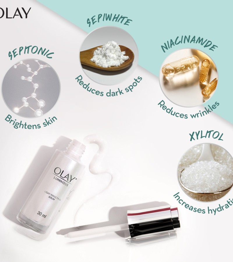 • Olay’s specially designed dropper mechanism enables targeting problem areas.