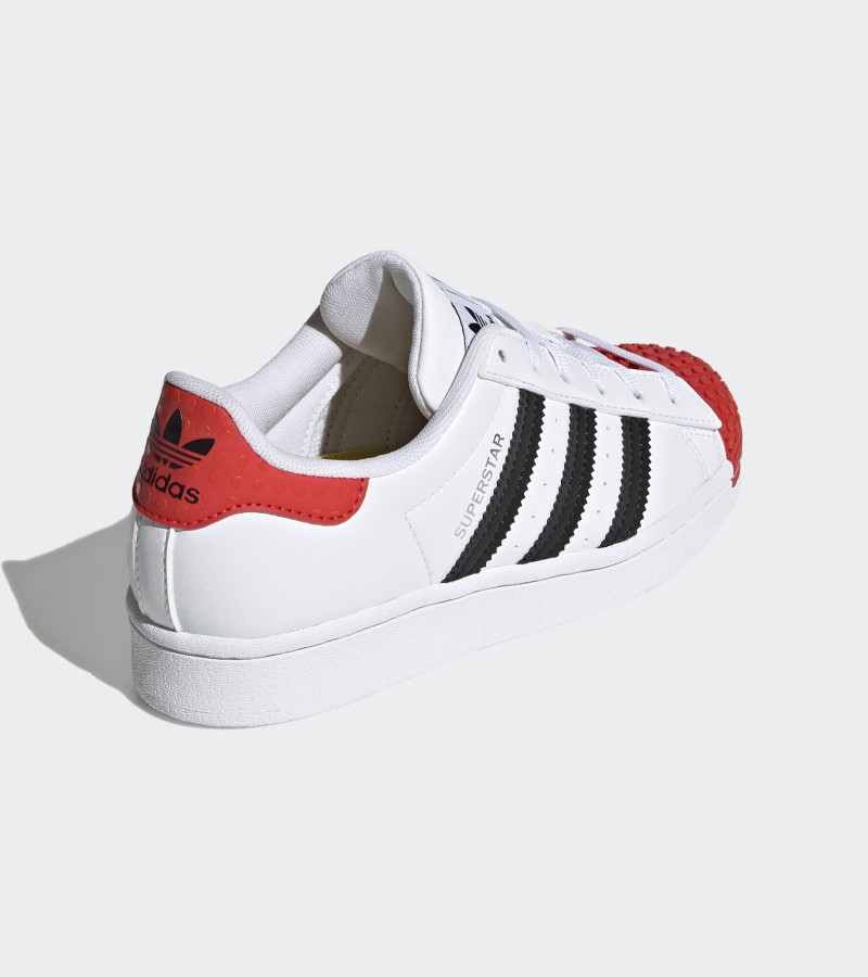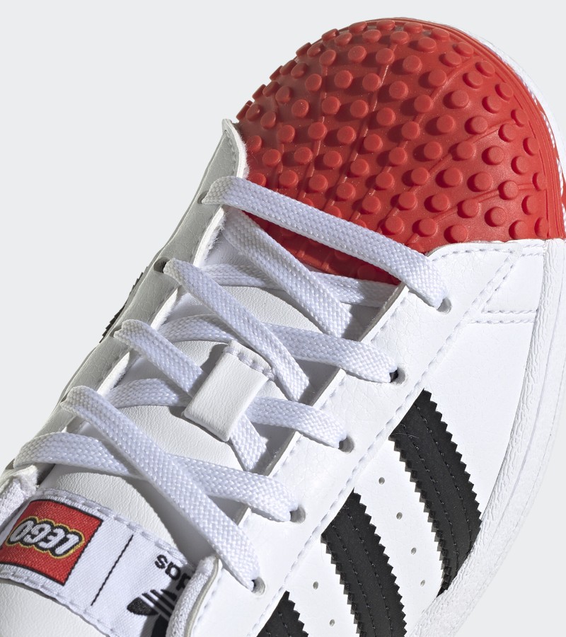Style, fun and comfort is not a bad combination to have. Superstar LEGO® shoes feature iconic 3-Stripe branding and playful design details with LEGO brick-inspired texture on the shell-toe and heel-tab. Comfortable sockliners have been designed to allow for wearing around the clock – ideal for patio-to-playground scenarios.