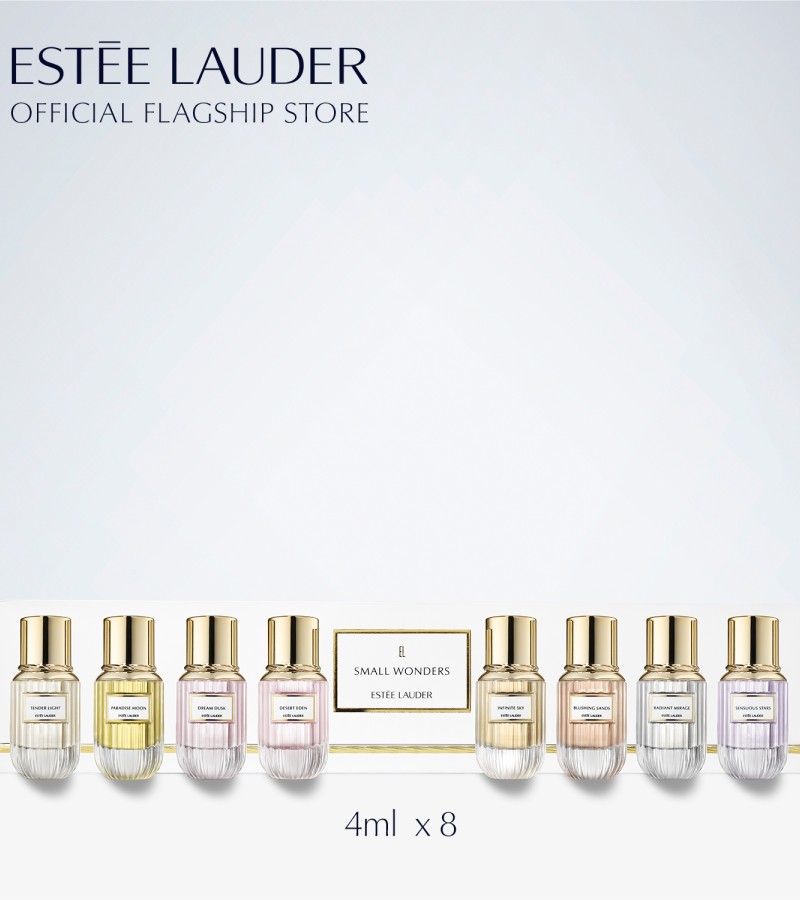 Let your mind imagine them. Let your senses feel them. Discover 8 breathtaking fragrances that capture the beauty of nature and awaken your imagination, to experience undiscovered places fragrance has never taken you before. This exquisite collection includes all 8 fragrances in our Luxury Collection, in Eau de Parfum Deluxe Mini Sprays (4ml each): TENDER LIGHT: Feel the joy and warmth of sunlight and be lifted to a palace of dreams. • Citrus Green: Chinese Tea Accord, Bergamot and Florentine Iris. SENSUOUS STARS: Enjoy the sensual tranquility of a walk under a moonlit sky. • Fruity Chypre: Chinese Plum, Lavender and Orris. DREAM DUSK: Enter a secret garden where flurries of petals lead you from day into night. • Floral Marine: Cherry Blossom, Blackcurrant Buds and Geranium. RADIANT MIRAGE: Follow a timeless road to a new realm of the senses just beyond reach. • White Floral Woody: Jasmine Sambac, Sandalwood and Patchouli. DESERT EDEN: Imagine the moment when the sun’s rays spread over the desert at dawn. • Woody Floral: Sandalwood, Turkish Rose and Olibanum. BLUSHING SANDS: Let your senses lead you in a dream journey across rose-tinted sands. • Woody Vetiver: Vetiver Haiti, Pink Pepper and Musk Accord. PARADISE MOON: Escape to a moonlit forest filled with temptations for the senses. • Leather Floral: Osmanthus, Cistus Oil and Leather Accord. INFINITE SKY: Rise up into a brilliant sunset sky, thrilling your senses with rare beauty. • Amber Spicy: Sichuan Pepper, Madagascar Vanilla and Leatherwood. How To Use Take your mind and your senses on an enchanted journey by spraying onto pulse points, or anywhere you like to wear your fragrance. What it is An exquisite gift set that awakens your mind and your senses with all 8 fragrances in the Estée Lauder Luxury Collection, in Deluxe Mini Sprays.
